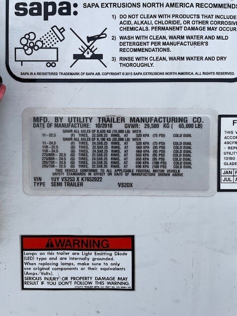 Description: 53'x102" Dry Van Trailer with Air Ride, Aluminum Wheels, Aluminum oof, Wood Floor (5T)