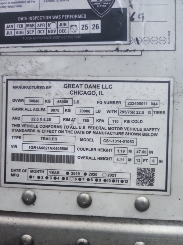 2022 Great Dane 53x102 Trailer Van