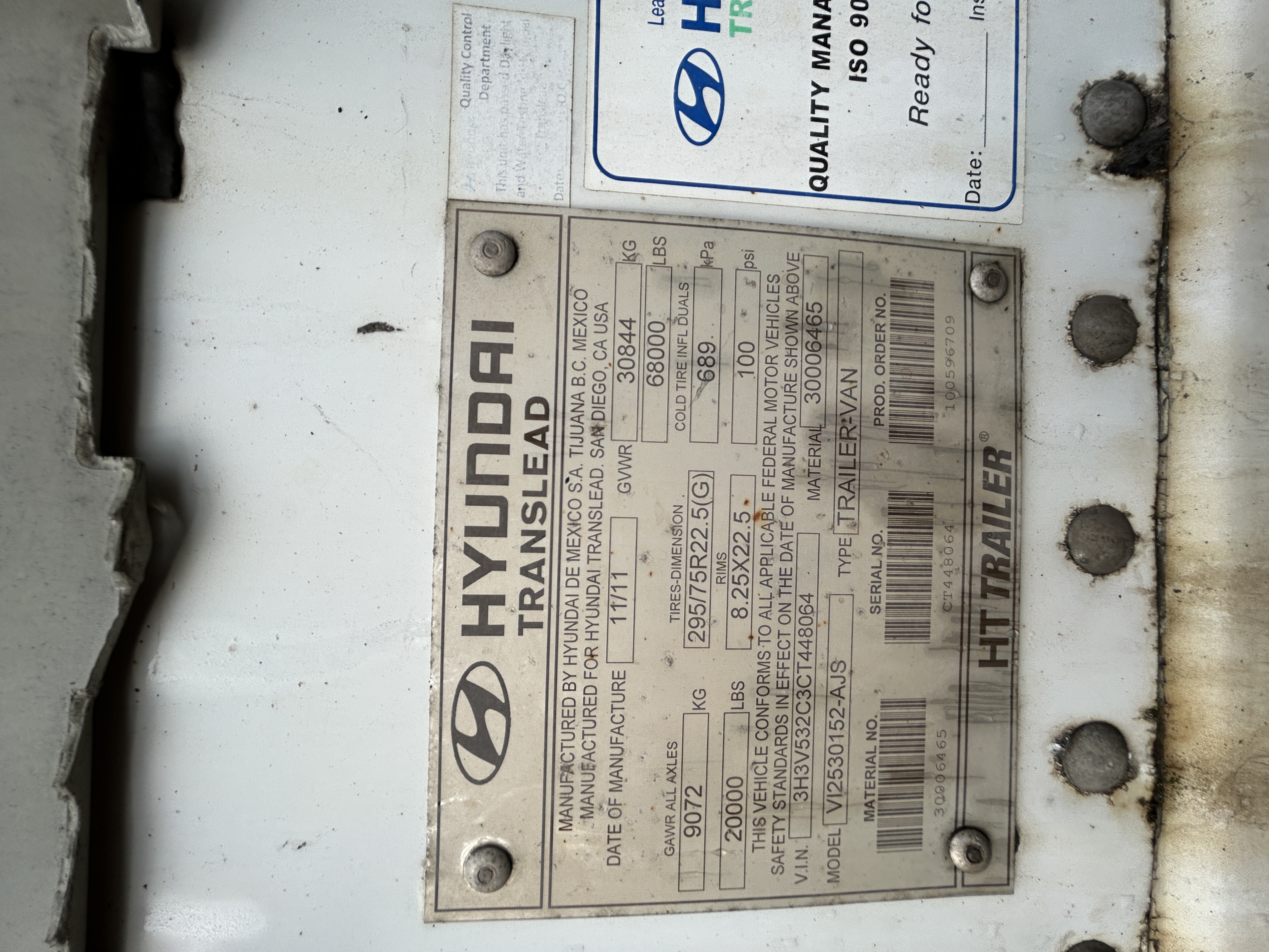 2014 Hyundai 53x102 Trailer Van