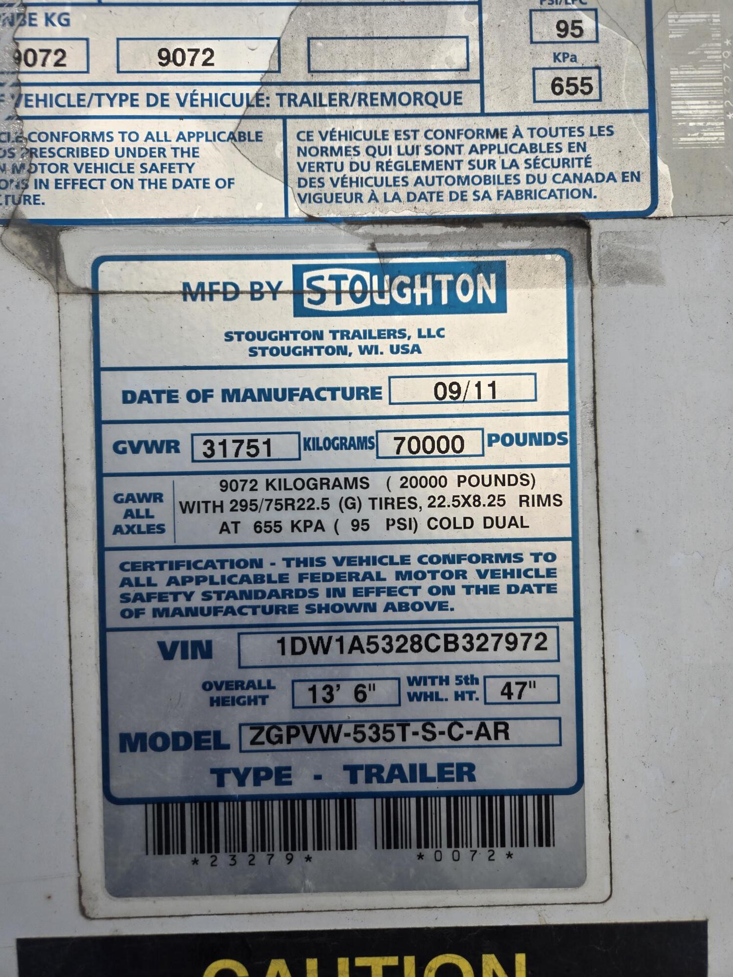2012 Stoughton Trailer Van