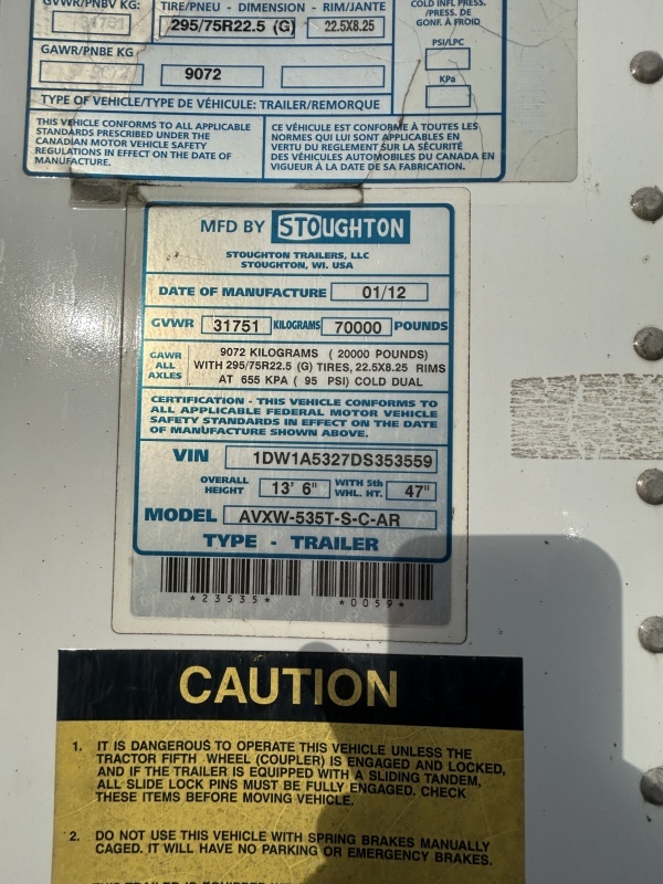 2013 Stoughton Trailer Van
