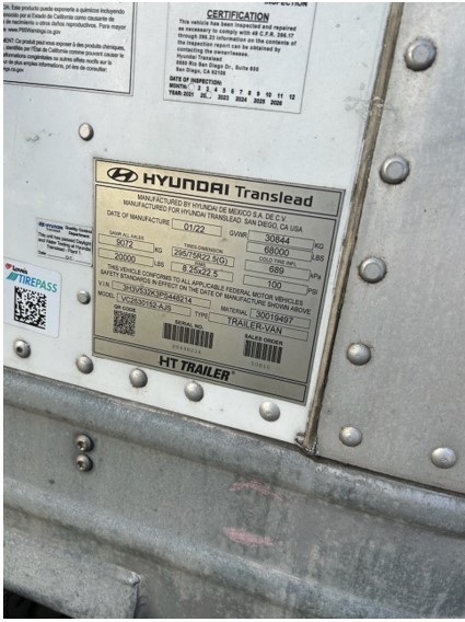 2019 Hyundai Dry Van Trailer Van