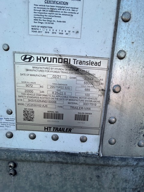 2021 Hyundai VC2530212-AJS Trailer Van