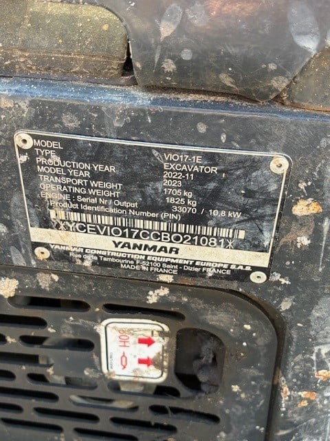 2023 Yanmar Vio17 Excavator Compact