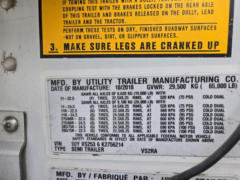 2019 Utility VS2RA Trailer Reefer