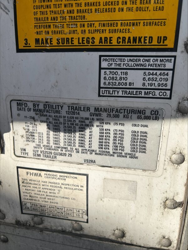 2014 Utility VS2RA Trailer Reefer