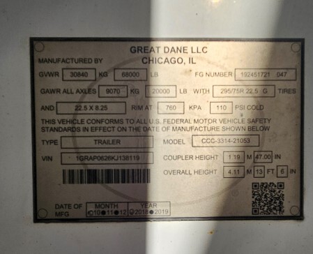 2019 Great Dane 53x102 Trailer Van