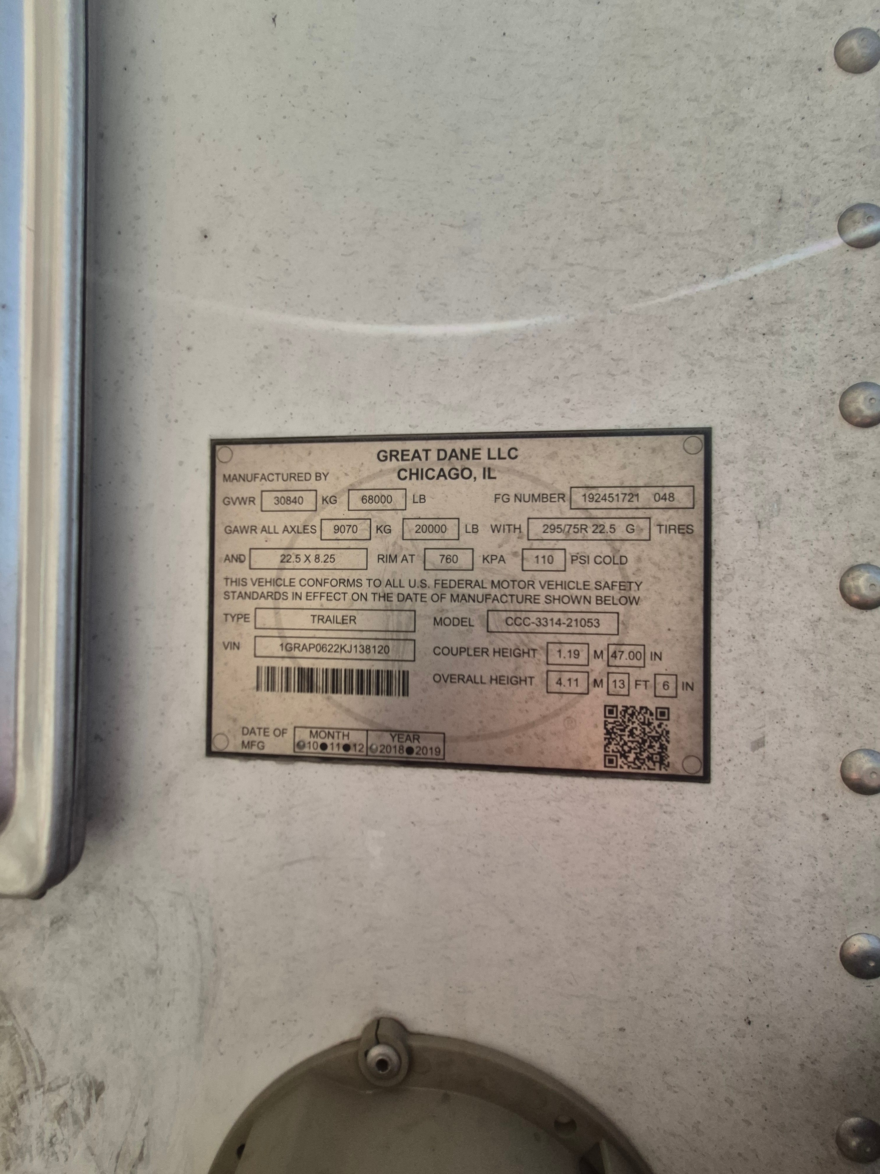 2019 Great Dane 53x102 Trailer Van
