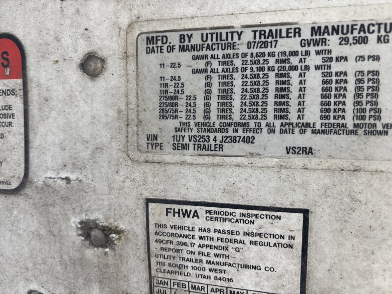 2017 Utility VS2RA Trailer Reefer