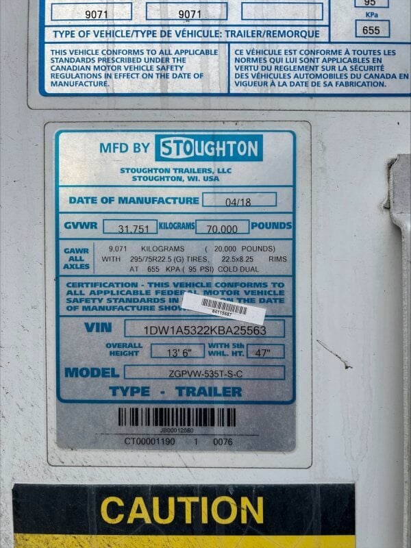 2023 Stoughton 53x102 Trailer Van