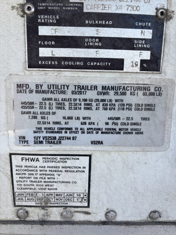 2017 Utility VS2RA Trailer Reefer