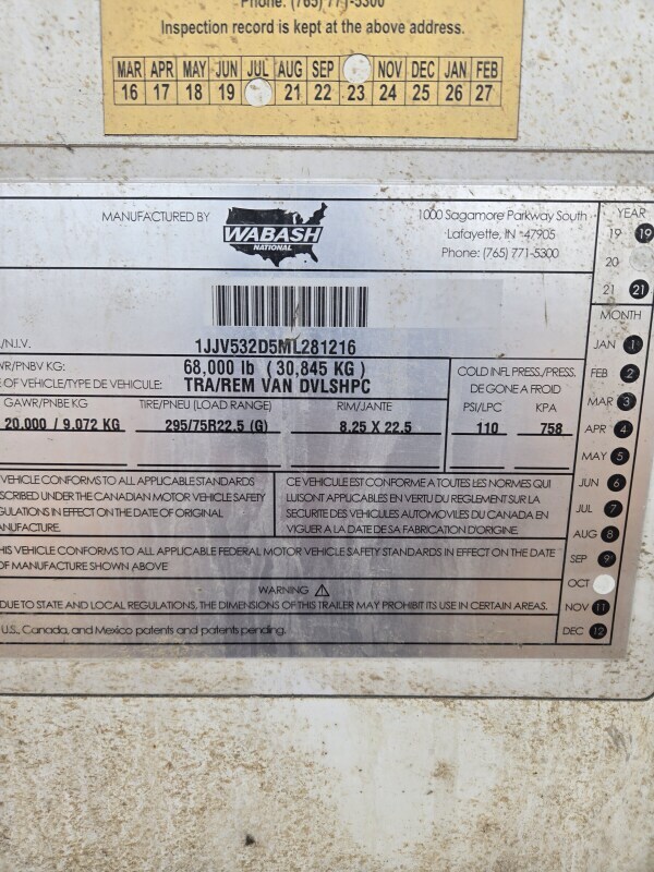 2021 Wabash 53x102 Trailer Van