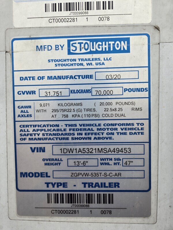 2021 Stoughton 53x102 Trailer Van