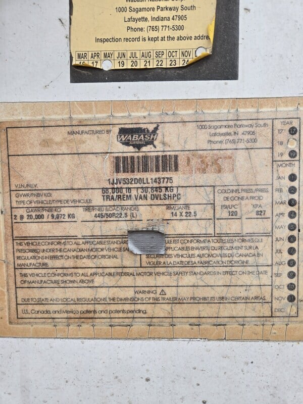 2020 Wabash 53x102 Trailer Van