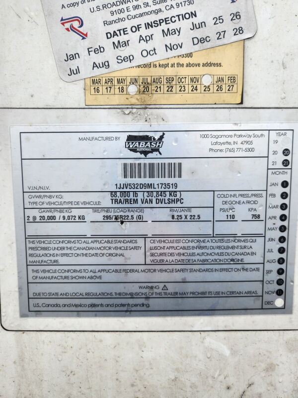 2020 Wabash 53x102 Trailer Van